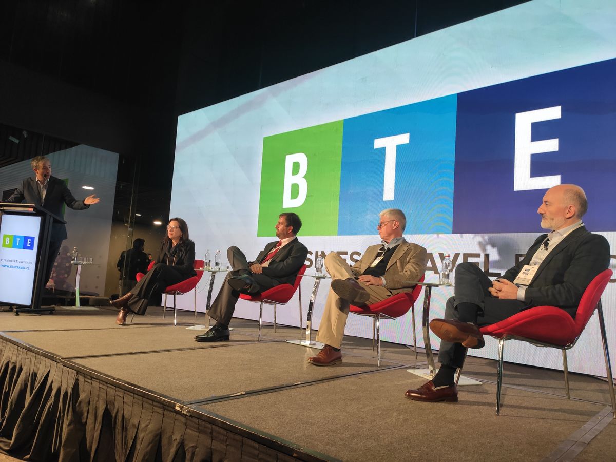 El primer panel de la Business Travel Expo (BTE) debatió en torno a los desafíos y oportunidades para el turismo de negocio. El espacio fue moderado por el director de contenido de la BTE, Álvaro Castilla, y participaron: la vicepresidenta ejecutiva de la Federación de Empresas de Turismo de Chile (Fedetur), Helen Kouyoumdjian; el presidente de Hoteleros de Chile, Alberto Pirola; el presidente de la Asociación Chilena de Empresas de Turismo (Achet), Guillermo Correa; y el gerente regional de Air Canada para los países andinos, Alfredo Babun.