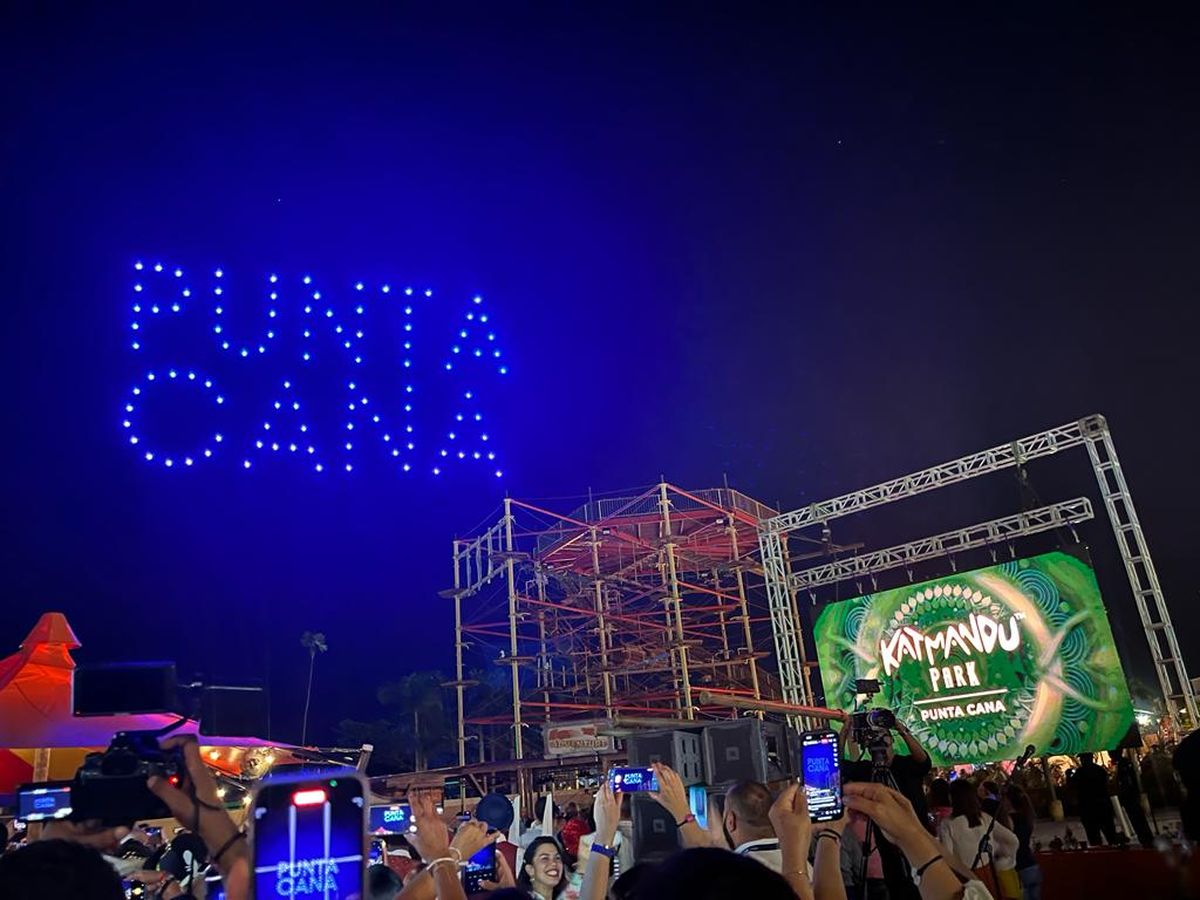 La compañía sorprendió con un espectáculo de drones que en perfecta coordinación formaron las palabras "Katmandu", "Meliá", "Falcon's by Meliá, "DATE 2023", "Punta Cana" y la bandera de República Dominicana.